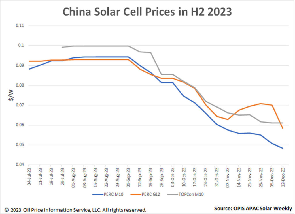 Por su parte, las células PERC G12 se desplomaron un 16,69% esta semana por la caída de la demanda, lo que supone más que la desaparición de las recientes ganancias derivadas del repunte de la demanda de noviembre, según un observador del mercado. Esto sugiere que la temporada alta de demanda para las instalaciones de este año ya ha pasado, añadió.
