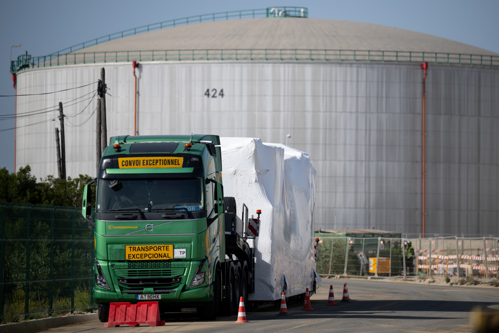 Este módulo es el primero de 10 unidades similares, equipadas con sistemas de procesamiento de hidrógeno, que se recibirán en Sines hasta principios de 2026. Una vez instalados, en la primera mitad del próximo año, garantizarán una capacidad total de electrólisis de 100 MW.