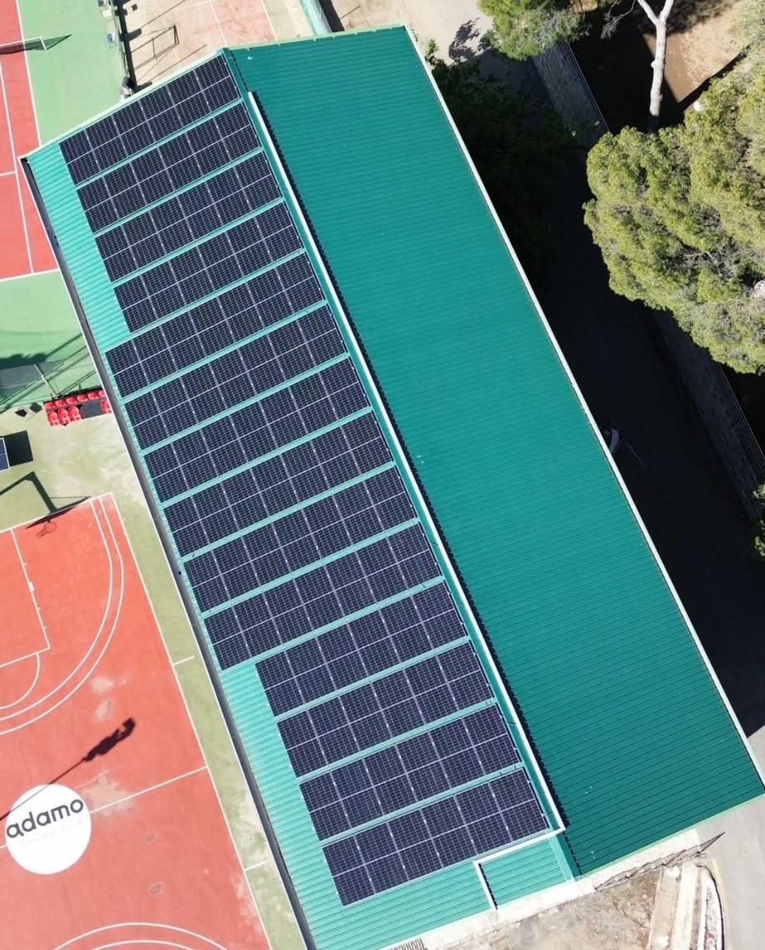 Por su parte, el Frontón Municipal integra 90 módulos instalados sobre la cubierta con orientación sur y estructura coplanar, aportando 41,9 kWp a la red de autoconsumo.