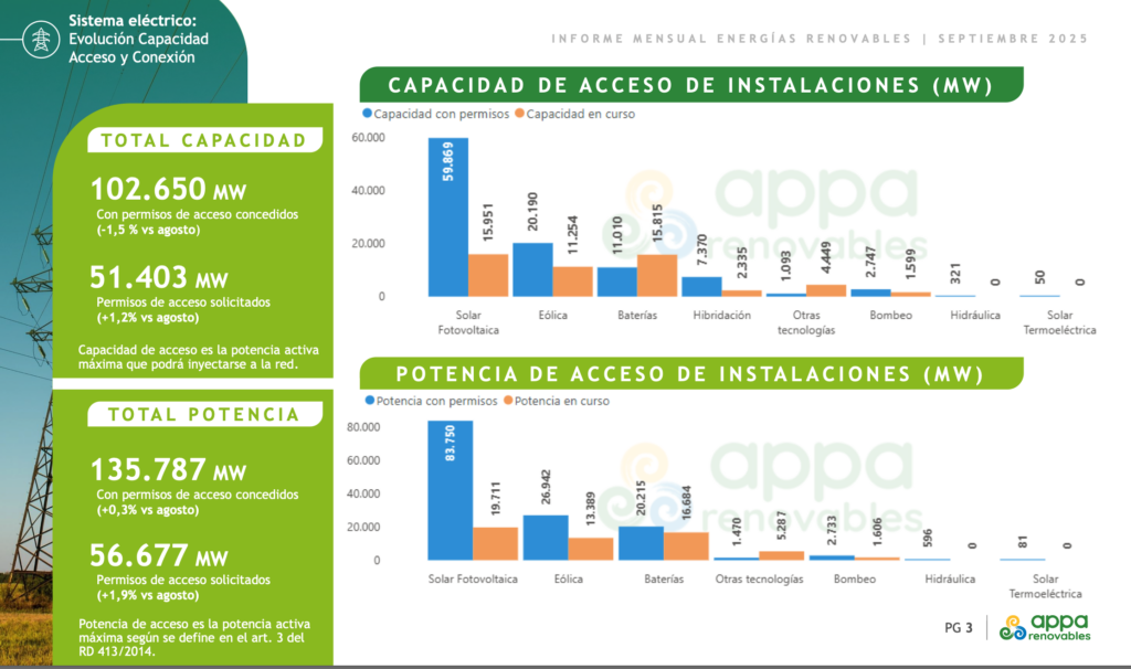La capacidad de acceso con permisos otorgados a instalaciones fotovoltaicas asciende ya a 59.869 MW, confirmando el tamaño del pipeline pendiente de conexión.