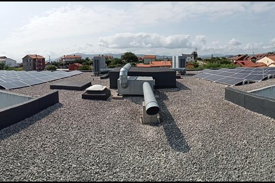El sistema está compuesto por 248 módulos fotovoltaicos de 450 Wp, distribuidos en 16 strings de entre 14 y 18 módulos, conectados a dos inversores de 50 kW cada uno. Los paneles solares están instalados sobre la cubierta del edificio, en estructuras prefabricadas de hormigón con orientación este-oeste. También cuenta con un sistema de monitorización. El Ayuntamiento estima que la producción anual superará los 100.000 kWh.