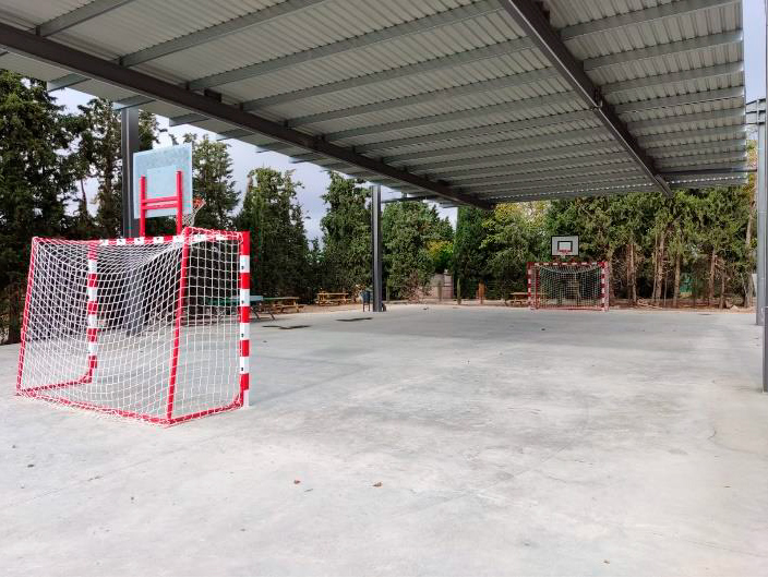 La pérgola, construida a base de dos pórticos de acero laminado, cuenta con una altura máxima de 5.835 mm en la coronación del pórtico, y el panel de cubierta queda a una altura máxima de 4.817 mm sobre rasante. Desde estos pórticos se descuelgan dos vigas IPE-300, sobre las que se apoya el sistema de correas y el cerramiento de cubierta. De este modo, la pérgola contaría con una superficie cubierta de 280 m², resultando una superficie total construida de 339 m².