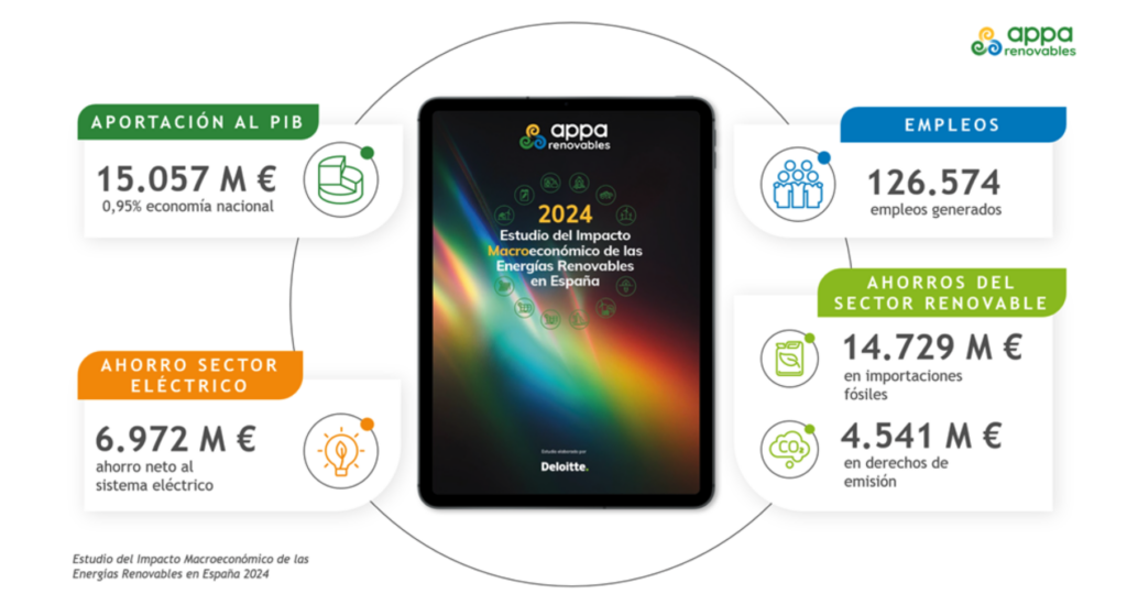Así lo recoge el informe del Impacto Macroeconómico de las Energías Renovables, elaborado por Deloitte para APPA Renovables presentado este viernes en Madrid.