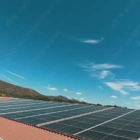 El soporte de los paneles en la cubierta es coplanar con orientación sur. La estructura es de aluminio anodizado, con piezas de unión fijadas a las cerchas.
