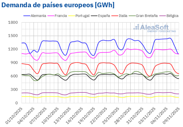 Para la semana del 10 de noviembre, según las previsiones de demanda de AleaSoft Energy Forecasting, la demanda disminuirá en los mercados de Francia, Bélgica, Portugal y Alemania. Por otro lado, se prevé que aumente en Gran Bretaña, Italia y España.