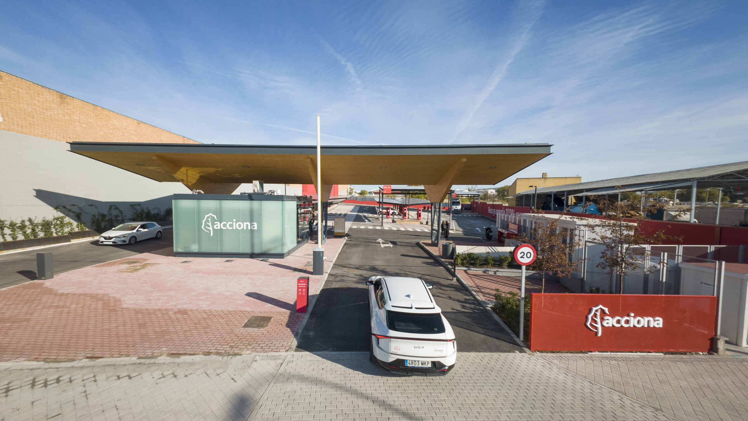 Esta energía fotovoltaica alimentaría tanto las recargas de los vehículos y como a el edificio de servicios, que ofrece a los usuarios una zona de descanso equipada con máquinas de vending y aseos.