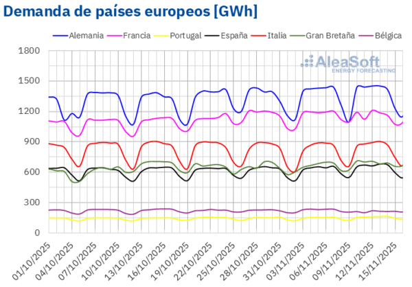 Para la tercera semana de noviembre, según las previsiones de demanda de AleaSoft Energy Forecasting, los mercados analizados aumentarán su demanda de forma generalizada, impulsados por descensos en las temperaturas medias en toda Europa. En los mercados de Francia y Bélgica, el aumento de la demanda también se verá favorecido por la recuperación de la laboralidad tras el festivo nacional del 11 de noviembre.