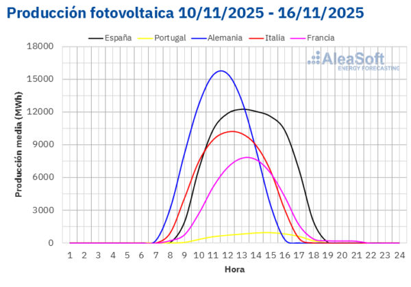 Fuente: Elaborado por AleaSoft Energy Forecasting con datos de ENTSO-E, RTE, REN, Red Eléctrica y TERNA.