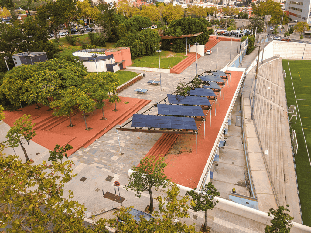En cuanto a la pérgola de la plaza de Alfonso Comín, en el distrito de Gràcia, se trata de una instalación con una potencia instalada de 24,32 kWp y una generación estimada de 30.400 kWh/año. El Ayuntamiento se reserva una potencia de 1,5 kWp para los suministros municipales de la zona.