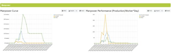 Todos los datos se integran en un panel de control interactivo con seguimiento del progreso en tiempo real, curvas S y análisis de variaciones, brindando control total y visibilidad sobre la ejecución del proyecto.