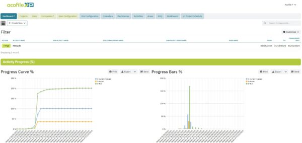 Acoren Renewables ha lanzado una nueva aplicación para el control del avance de la producción, Acofile Production (Acofile P). Los equipos de obra emplean una aplicación móvil para registrar en tiempo real las actualizaciones de actividades y el uso de recursos. La plataforma web permite a los usuarios definir actividades, áreas de medición, cantidades, calendarios y líneas base.