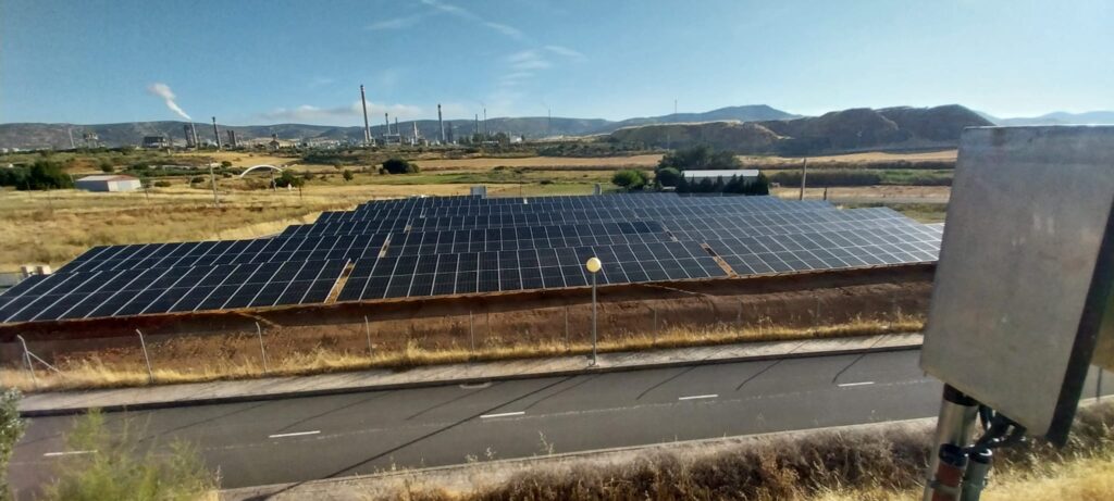 Para el anclaje y soporte de los módulos se instaló una estructura mediante hincado al suelo, de dos filas y con un ángulo de 30º.