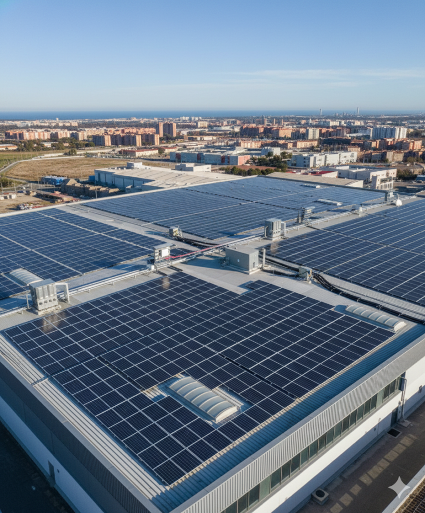 La instalación se enmarca en el modelo de autoconsumo con conexión a red, con clasificación colectiva y modalidad con excedentes. La energía generada será compartida entre varios consumidores a través de la red de distribución, con punto de conexión en media tensión. El sistema estará ubicado sobre cubierta y contará con configuración trifásica.