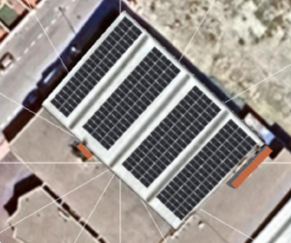 Según la empresa, el edificio dispone de una instalación fotovoltaica de 120 kW y 4.000 m² de cubierta disponible. El sistema está formado por 182 paneles del fabricante chino-canadiense Canadian Solar, modelo Hiku7 CS7N‑660MS de 660 Wp cada uno, y un inversor Huawei, modelo SUN2000 100KTL‑M2 de 100 kW. Los módulos están montados sobre una estructura coplanar orientada al sur. La planta producirá aproximadamente 191 MWh anuales.