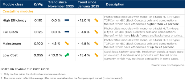 Los precios de los módulos apenas han variado a finales de año. Parece que se ha alcanzado un nivel en el que ya no hay margen para más bajadas de precios. Las excepciones individuales a la baja son el resultado de ventas urgentes y liquidaciones de existencias, y no representan una tendencia real. Dadas las enormes pérdidas que los fabricantes asiáticos llevan años sufriendo, todo el mundo espera una corrección general al alza de los precios. Sin embargo, por el momento nadie sabe cuándo se producirá ni mediante qué mecanismos. Unos precios más altos de los módulos permitirían por fin volver a ofrecer más calidad, pero ninguno de los competidores se atreve a dar el primer paso. Los grandes fabricantes chinos temen perder las cuotas de mercado que tanto les ha costado ganar.