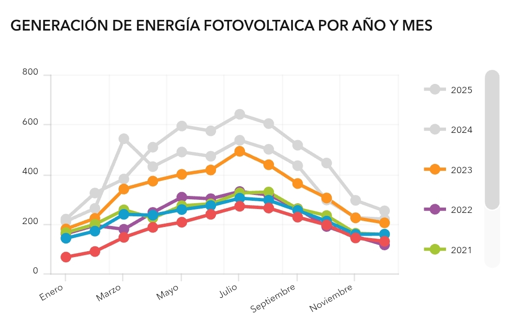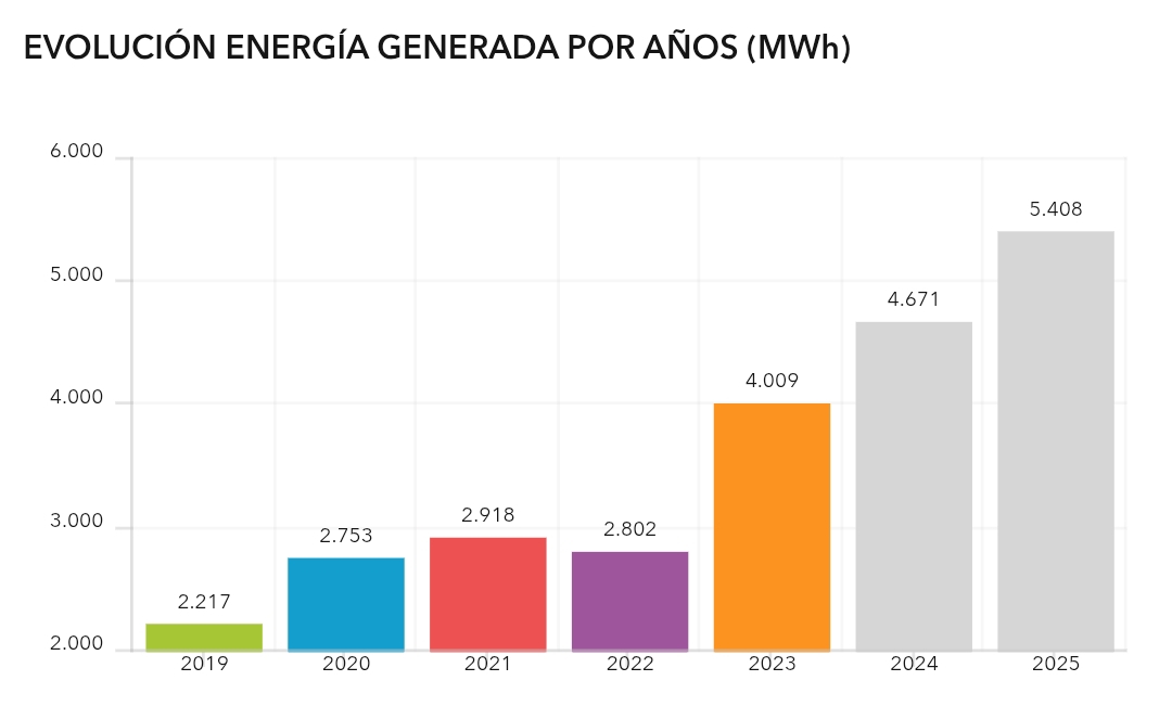 Entre 2019 y 2025, la producción de energía se ha más que duplicado, pasando de 2.217 MWh a una proyección de 5.408 MWh anuales.