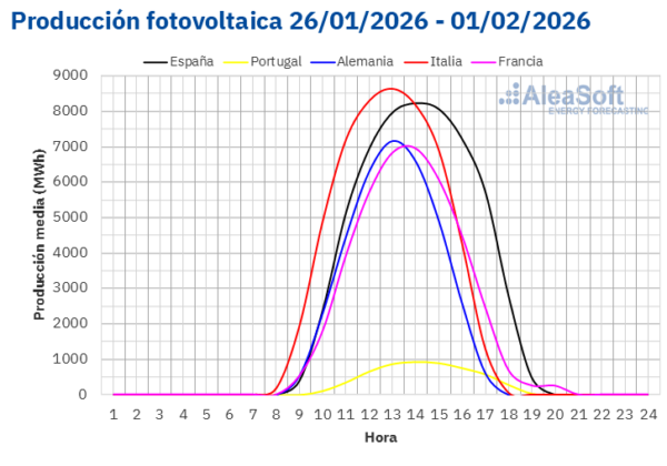 Fuente: Elaborado por AleaSoft Energy Forecasting con datos de ENTSO-E, RTE, REN, Red Eléctrica y TERNA.