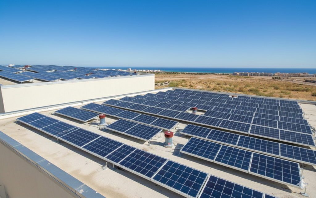 La primera actuación del proyecto consiste en la instalación de una planta fotovoltaica de 60 kW sobre la cubierta del Palacio de Congresos de El Toyo. El sistema contará con 126 paneles solares Tiger Neo JKM480N, del fabricante chino Jinko Solar, que ocuparán una superficie de 136 m² con orientación sur e inclinación de 15°.