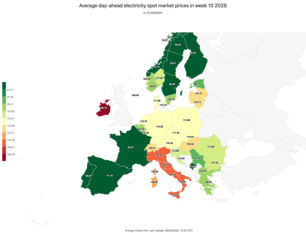 El impacto varía según el peso del gas en cada mix eléctrico: 41% de la generación en Italia, 35% en Reino Unido, 17% en España, 13% en Alemania y alrededor del 3% en Francia. En consecuencia, los contratos eléctricos a corto plazo subieron 19,5% en Reino Unido, 13,5% en Italia y 7,4% en Alemania, mientras que Francia llegó a registrar inicialmente caídas. Posteriormente, con nuevas subidas del gas, los contratos mensuales aumentaron cerca del 31% en Alemania y del 20% en Italia.
