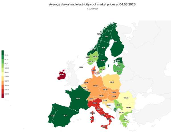 Los mercados eléctricos europeos atraviesan episodios de volatilidad creciente debido a la combinación de una elevada penetración de renovables variables y tensiones geopolíticas que afectan al suministro de gas. Según datos de Montel Analytics, en mercados como Países Bajos, Dinamarca, Alemania y Bélgica los precios mayoristas pueden variar en cientos de euros por MWh en pocas horas. El 4 de marzo, por ejemplo, el precio day-ahead en Dinamarca pasó de 26 €/MWh a las 14:00 a casi 430 €/MWh a las 17:45, mientras que en Países Bajos subió de 24 €/MWh a 450 €/MWh en menos de cuatro horas.