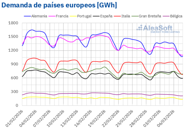 Fuente: Elaborado por AleaSoft Energy Forecasting con datos de ENTSO-E, RTE, REN, Red Eléctrica, TERNA, National Grid y ELIA.