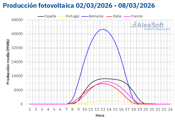 Fuente: Elaborado por AleaSoft Energy Forecasting con datos de ENTSO-E, RTE, REN, Red Eléctrica y TERNA.