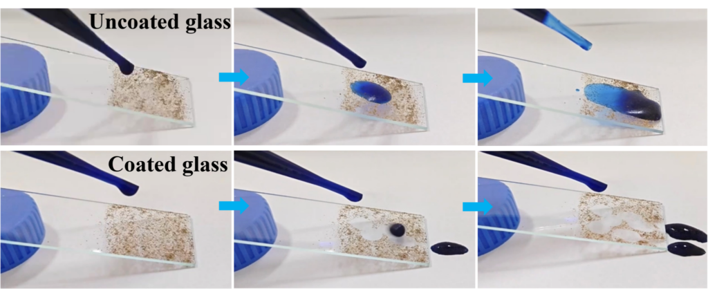 Para fabricar el nuevo recubrimiento, los investigadores utilizaron láminas de vidrio como sustrato y compuestos como tetraetil ortosilicato (TEOS), etanol, amoníaco y nanopartículas de sílice hidrofóbica. Las superficies de vidrio se limpiaron inicialmente mediante ultrasonidos con detergente y etanol, se enjuagaron con agua desionizada y se secaron para eliminar contaminantes. Posteriormente se preparó una solución de sílice utilizando TEOS, etanol, agua y amoníaco como catalizador para favorecer las reacciones químicas.