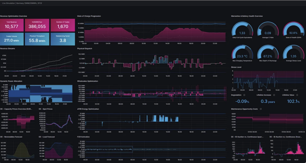 En términos de rendimiento, la plataforma alcanza ingresos anuales aproximados de 134.000 €/MW para sistemas de 4 horas y 85.000 €/MW para configuraciones de 2 horas, lo que supone mejoras de hasta un 58 % respecto a estrategias de trading convencionales o menos sofisticadas. Estos resultados derivan de una operativa intensiva, con hasta 1.000 transacciones diarias.