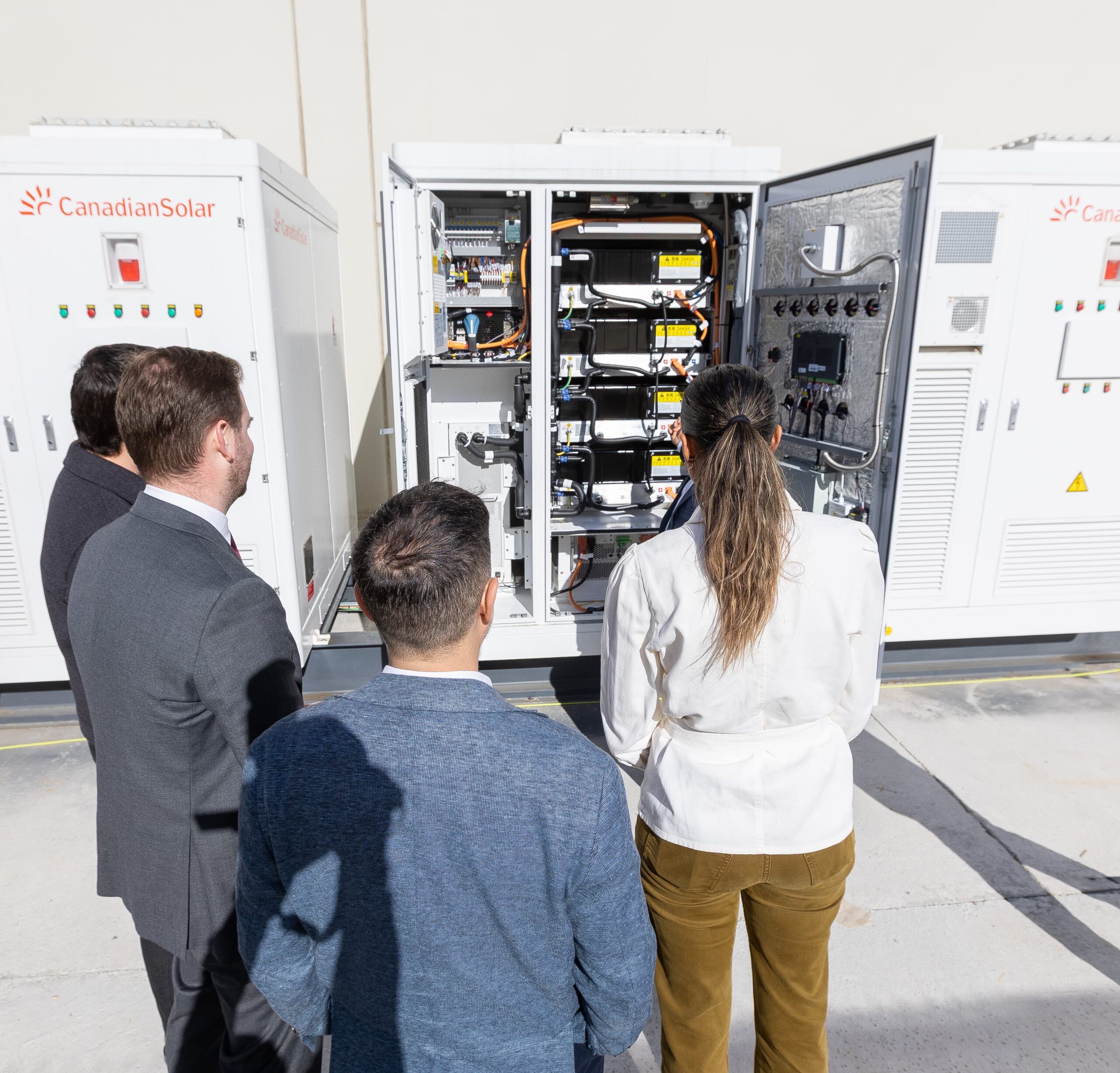 La planta incluye un sistema de almacenamiento compuesto por siete baterías Canadian Solar, modelo Kubank 2.0 S-227-2h-IEC, de 125 kW y 277 kWh cada una, que alcanzan un total de 875 kW y 1.939 kWh.