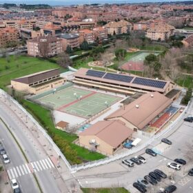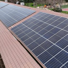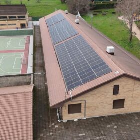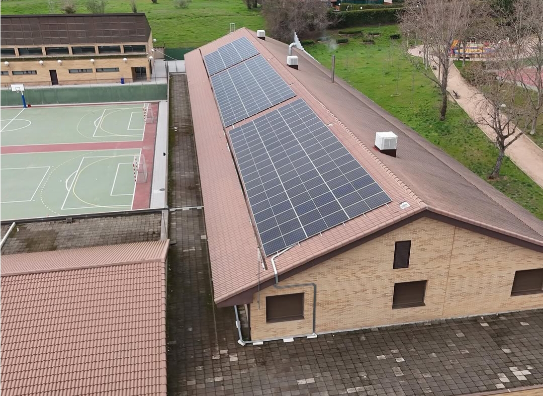 Por otra parte, se ha completado la instalación solar fotovoltaica en la cubierta de teja del edificio principal del CEIP Ágora. El sistema se compone de 144 paneles solares conectados a dos inversores trifásicos Huawei modelo SUN2000-30KTL-M3, de 30 kW cada uno. Los paneles están ubicados en la vertiente sur de la cubierta, en disposición coplanar, con una inclinación de 25°.