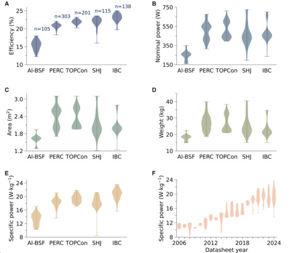 La evolución del diseño de los módulos fotovoltaicos de silicio cristalino está redefiniendo parámetros clave como la relación entre potencia y peso, un indicador cada vez más relevante en múltiples aplicaciones energéticas. Un equipo internacional de investigadores ha constatado que la potencia específica de los módulos comerciales ha pasado de aproximadamente 8,5 W/kg a comienzos de la década de 2000 a 23,6 W/kg en la actualidad, lo que refleja una mejora sustancial en el rendimiento estructural de esta tecnología.