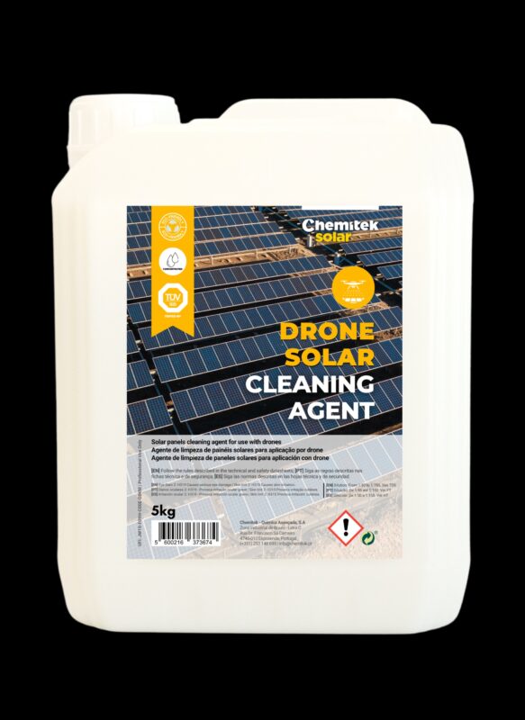 Chemitek lanza un producto para optimizar la limpieza de paneles fotovoltaicos con drones