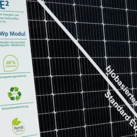 En el módulo prototipo presentado por Fraunhofer CSP, todos los componentes que no se utilizan directamente para convertir la luz en electricidad están hechos de materiales biodegradables o reciclables o materias primas renovables. El módulo es el resultado del proyecto E2 – E-Quadrat, financiado por el Ministerio Federal de Economía y Acción Climática de Alemania.