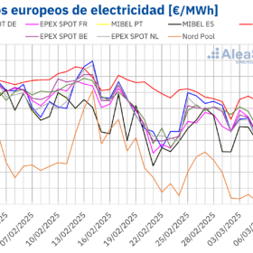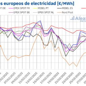 En cambio, el incremento de la producción eólica en la península ibérica favoreció el descenso de los precios en el mercado MIBEL. Además, la producción fotovoltaica alcanzó récords para día de noviembre en en los principales mercados europeos.