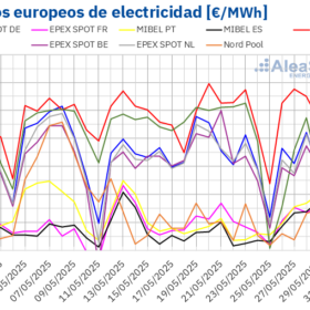 Durante la cuarta semana de octubre, el aumento de la producción eólica favoreció el descenso de los precios en la mayoría de los principales mercados eléctricos europeos, cuyos promedios se situaron por debajo de 60 €/MWh.