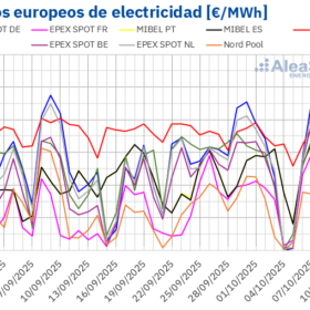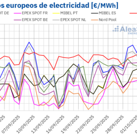 Durante la semana, los mercados mostraron un comportamiento dispar. El mercado británico y el francés registraron precios diarios inferiores a 20 €/MWh, mientras que en Alemania e Italia se superaron los 100 €/MWh.